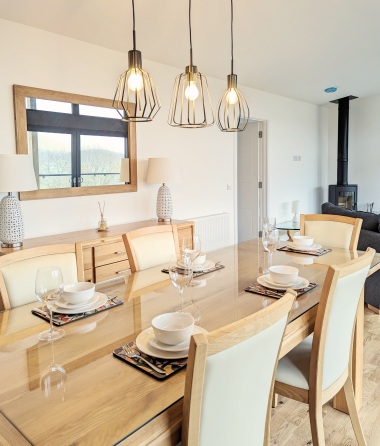 Step inside our luxury lodge and be greeted by a meticulously designed interior that seamlessly blends elegance with comfort. The open-plan layout creates a sense of space and tranquility, allowing you to unwind and relax in style. Curl up in front of the cozy wood-burning stove, enveloped by its warm glow, and let the worries of the world melt away. The lodge features three bedrooms, including a master suite with an ensuite bathroom, ensuring a restful night's sleep after a day of exploration and adventure.