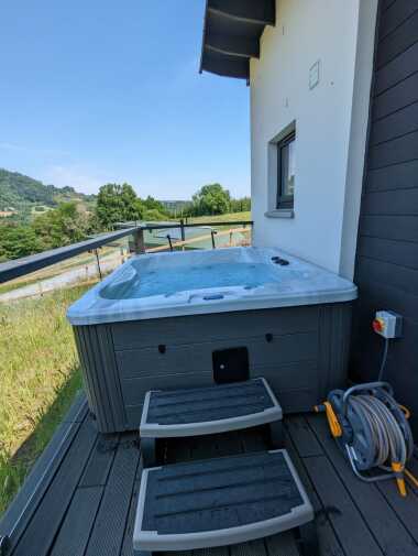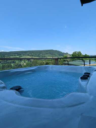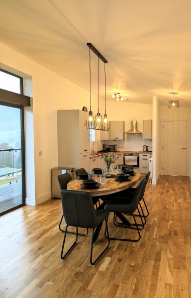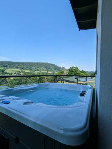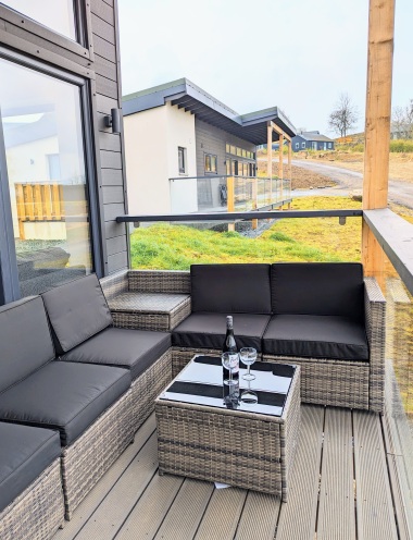 Prepare to be mesmerised as you step onto the expansive balcony of our luxury lodge. With its awe-inspiring glass frontage overlooking the magnificent Perthshire mountains and the meandering River Tay, you will feel an instant connection with nature. Sink into the plush outdoor corner sofa, saver a glass of wine, and immerse yourself in the breathtaking panoramic views. As the sun sets behind the mountains, soak away your cares in the private hot tub, allowing the serenity of the surroundings to envelop you.